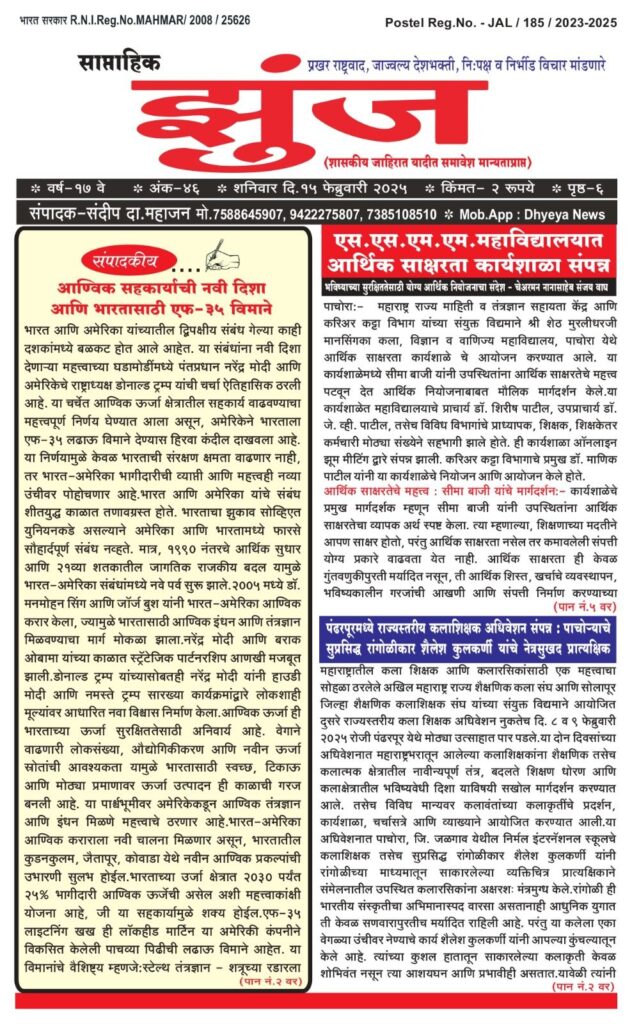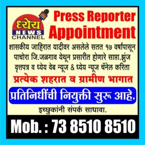 ध्येय न्यूज चॅनेलच्या बातम्या मिळवण्यासाठी येथे क्लिक करून आमचा व्हाट्सअप ग्रुप जॉईन करा.