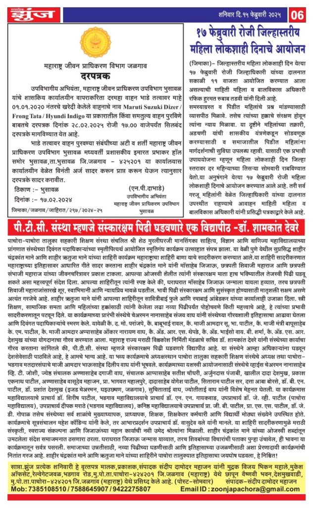 (दै.बित्तमबातमी, ठाणे च्या आज दि.१५ फेब्रुवारी २०२५ च्या अंकातील “सहज सुचलं म्हणून” या स्तंभातील आजचा -अविनाशजी पाठक यांचा लेख) आम्ही ध्येय न्युज & साप्ता झुंज वाचकांसाठी खास प्रकाशित करीत आहोत