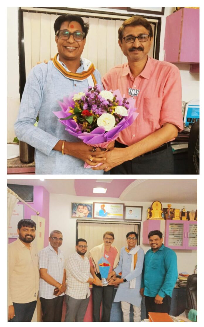 जळगाव – राजकारणात नेतृत्व हे केवळ पदाचा अधिकार नसून, ते जनतेच्या विश्वासाची जबाबदारी असते. अशाच जबाबदारीने भारलेले नेतृत्व म्हणून ओळखले जाणारे डॉ. राधेश्यामदादा चौधरी यांची भारतीय जनता पार्टीच्या जळगाव जिल्हाध्यक्षपदी नुकतीच नियुक्ती झाली असून, संपूर्ण जिल्ह्यात त्यांचे स्वागत, अभिनंदन आणि शुभेच्छांचा वर्षाव सुरु आहे. त्यांच्या या नियुक्तीबद्दल महाराष्ट्र राज्याचे पाणीपुरवठा व स्वच्छता मंत्री तसेच जळगाव जिल्ह्याचे पालकमंत्री आदरणीय भाऊसो. गुलाबरावजी पाटील यांचे स्वीय सहाय्यक नवलसिंगराजे पाटील यांनी दादासो डॉ. राधेश्यामदादा चौधरी यांना सन्मानपूर्वक भेट घेऊन अभिनंदनपर शुभेच्छा दिल्या. या प्रसंगी ज्या आत्मीयतेने आणि आदराने संवाद घडला, त्यात राजकीय सौहार्द, कार्यकर्त्यांप्रती निष्ठा आणि एकात्म भावना स्पष्टपणे झळकली. नगरसेवक चंद्रशेखरदादा पाटील, कवी व साहित्यिक प्रफुल नाना पाटील वडनगरीकर, बापू पाटील आणि विशाल पाटील यांचीही या स्नेहभेटीला उपस्थिती होती, ज्यामुळे वातावरण अत्यंत सकारात्मक आणि उत्साही झाले.