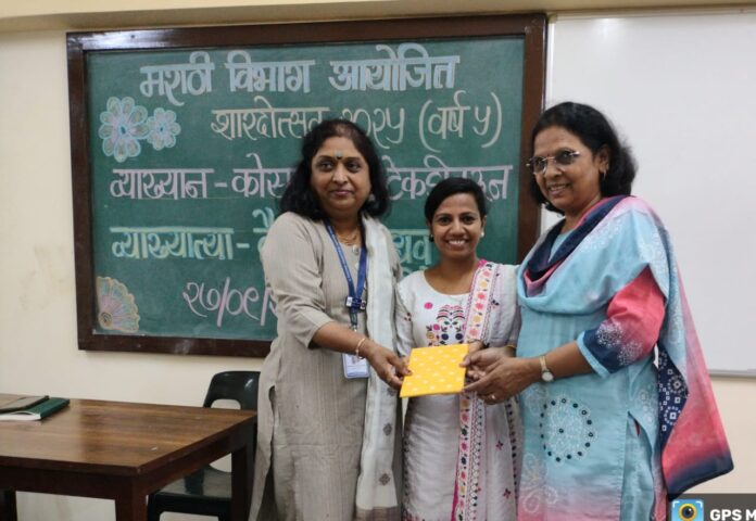 मुंबई (गुरुदत्त वाकदेकर) : सेवा मंडळ एज्युकेशन सोसायटी संचालित श्रीमती मणिबेन एम.पी. शाह कला व वाणिज्य स्वायत्त महिला महाविद्यालयाच्या मराठी विभागात शारदोत्सव २०२५ (पाचवे वर्ष) अंतर्गत ‘नवदुर्गा : नवविचार’ व्याख्यानमालेत सहावे पुष्प म्हणून ‘कोसबाडच्या टेकडीवरून’ या विषयावर व्याख्यान आयोजित करण्यात आले. विद्यार्थिनींसमोर अनुताई वाघ यांच्या कार्याचा आढावा घेण्यात आला. कार्यक्रमास प्राध्यापकवृंद, शिक्षकेतर कर्मचारी व विद्यार्थिनी मोठ्या संख्येने उपस्थित होत्या. या व्याख्यानातून समाजसेवेतील स्त्रीशक्तीच्या अद्वितीय योगदानाची जाणीव विद्यार्थिनींना झाली.