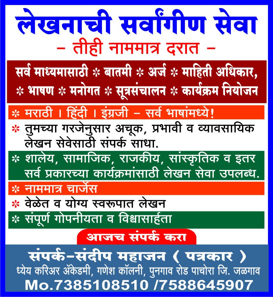 ध्येय न्यूज चॅनेलच्या बातम्या मिळवण्यासाठी येथे क्लिक करून आमचा व्हाट्सअप ग्रुप जॉईन करा.