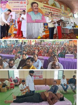 पाचोरा, दि. 8 ऑक्टोबर 2025 — “जिथे सर्व अमर्थ, तिने फक्त स्वामी समर्थ” या प्रेरणादायी घोषवाक्याखाली श्री स्वामी समर्थ सेवा मार्गाच्या सेवेकऱ्यांनी पुन्हा एकदा मानवीतेचे उदात्त उदाहरण घालून दिले. पाचोरा शहरातील स्वामी लॉन्स येथे आयोजित भव्य पूरग्रस्त मदत वितरण सोहळा, रक्तदान शिबिर, आरोग्य तपासणी शिबिर आणि मोफत औषध वाटप कार्यक्रम मोठ्या उत्साहात आणि शिस्तबद्ध वातावरणात पार पडला. या उपक्रमाचे प्रमुख आकर्षण म्हणजे गुरुपुत्र आदरणीय श्री. चंद्रकांत दादा मोरे यांच्या शुभहस्ते पूरग्रस्तांना मदत वाटपाचे आयोजन करण्यात आले होते. पाचोरा तालुका आणि शहरासह कडेवडगाव, गहूले, पिंपरी, सार्वे, शिंदाड या गावांतील एकूण 477 पूरग्रस्त परिवारांना स्वामी समर्थ सेवा मार्गातर्फे आवश्यक जीवनावश्यक वस्तूंचे वाटप करण्यात आले. या सेवाभावी कार्यामागे दादांच्या प्रेरणेने झपाटलेल्या सेवेकऱ्यांचा अथक प्रयत्न जाणवत होता. पूराच्या भीषण परिणामांनंतर जनतेच्या पुनर्वसनासाठी सेवा मार्गाने केलेले हे योगदान निःसंशयपणे सामाजिक संवेदनशीलतेचे उत्तम उदाहरण ठरले. या उपक्रमादरम्यान शासकीय रक्तपेढीच्या सहकार्याने आयोजित रक्तदान शिबिराला भाविक सेवेकऱ्यांचा उत्स्फूर्त प्रतिसाद लाभला. एकूण 35 सेवेकऱ्यांनी रक्तदान करून समाजाप्रती आपली बांधिलकी व्यक्त केली. विशेष म्हणजे या शिबिरात महिलांनी उत्साहाने सहभाग नोंदवून पुरुषांपेक्षा जास्त रक्तदान करून समाजात प्रेरणादायी संदेश दिला. कार्यक्रमाच्या निमित्ताने मोफत आरोग्य तपासणी व औषध वाटप शिबिर देखील घेण्यात आले, ज्याचा लाभ 500 हून अधिक नागरिकांनी घेतला. कार्यक्रमाचे उद्घाटन आदरणीय चंद्रकांतदादा मोरे, जगदीश बापू सोनार, केंद्र प्रतिनिधी सौ. रेखाताई पाटील, आणि श्री. दत्ताभाऊ सोनार यांच्या शुभहस्ते दीपप्रज्वलनाने झाले. कार्यक्रमाच्या प्रारंभी पाचोरा विभागात सुरू असलेल्या विविध सामाजिक उपक्रमांचा — रक्तदान शिबिरे, मोफत आरोग्य तपासणी, पूरग्रस्तांना मदतकार्य, शाळा व गाव स्वच्छता अभियान, बालसंस्कार व कृषी मेळावे, नदी स्वच्छता अभियान, दिवाळी फराळ व ब्लॅंकेट वाटप — सविस्तर आढावा प्रा. मनीष बाविस्कर यांनी उपस्थितांना दिला. त्यांच्या माहितीमुळे स्वामी समर्थ सेवा मार्गाची सर्वसमावेशक सामाजिक कार्यसंस्कृती अधोरेखित झाली. कार्यक्रमाचे सूत्रसंचालन अत्यंत प्रभावीपणे श्री. सुवर्णसिंग राजपूत सर यांनी केले. वातावरणात भक्तिभाव आणि सेवाभावाचा संगम जाणवत होता. या प्रसंगी श्री. जगदीश बापू सोनार यांच्या सोन्या-चांदीच्या भव्य शोरूमचे उद्घाटन देखील आदरणीय दादासाहेब मोरे यांच्या हस्ते करण्यात आले, ज्यामुळे कार्यक्रमास एक वेगळे औचित्य प्र