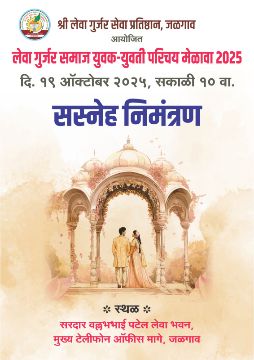 जळगाव : श्री लेवा गुर्जर सेवा प्रतिष्ठान, जळगाव यांच्या वतीने लेवा गुर्जर समाज युवक- युवती परिचय मेळावा २०२५ चे आयोजन दि. १९ ऑक्टोबर २०२५ रोजी सकाळी १० वाजता करण्यात आले आहे. हा भव्य सोहळा सरदार वल्लभभाई पटेल लेवा भवन, मुख्य टेलिफोन ऑफिस मागे, जळगाव येथे पार पडणार आहे. समाजातील सुशिक्षित, सुसंस्कारित व गुणवंत युवक-युवतींना विवाहासाठी एकमेकांना जाणून घेण्याची आणि योग्य जोडीदार निवड करण्याची सुवर्णसंधी या मेळाव्याद्वारे उपलब्ध होणार आहे. लेवा गुर्जर समाजाच्या प्रगत परंपरेचा व सामाजिक ऐक्याचा हा उपक्रम मानला जात असून, अनेक पालक व युवक-युवती या कार्यक्रमाची आतुरतेने वाट पाहत आहेत. या मेळाव्याचे उद्दिष्ट समाजातील तरुणांना आपापसात सुसंवादाची व आत्मीयतेची संधी उपलब्ध करून देणे, तसेच समाजातील नातेसंबंध अधिक घट्ट करणे हे आहे. आकर्षक वातावरणात, पारंपरिक संस्कारांची ओळख जपणारा आणि आधुनिकतेचा स्वीकार करणारा हा मेळावा समाजातील सर्व स्तरातील लोकांना एकत्र आणणार आहे. आयोजक मंडळाने सर्व लेवा गुर्जर बांधवांना या मेळाव्यात सहभागी होऊन कार्यक्रम यशस्वी करण्याचे आवाहन केले आहे. समाजातील सर्व नागरिकांनी या “सस्नेह निमंत्रण” स्वीकारून उपस्थित राहून युवक-युवतींच्या उज्ज्वल भविष्याच्या वाटचालीस साक्षी राहावे, असे आवाहन आयोजकांनी केले आहे.