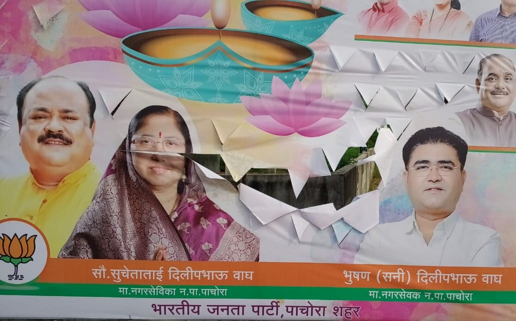 अस्वस्थता निर्माण होते आणि संबंधित पक्षाची प्रतिमा अधिकच मलिन होते.” घटनेनंतर नागरिकांकडूनही मिश्र प्रतिक्रिया व्यक्त करण्यात आल्या. काही नागरिकांनी म्हटले की, “शहरात निवडणूक वातावरण गरम आहे. पण अशा घटनेने मतदारांवर चुकीचा परिणाम होऊ शकतो. सर्वांनी संयम ठेवून निवडणूक पारदर्शक पद्धतीने पार पाडावी.” स्थानिक पोलिसांनीही या घटनेची नोंद घेतली असून, बॅनर फाडण्यामागील व्यक्ती किंवा गट शोधण्यासाठी तपास सुरू केला आहे.तसेच बॅनर लावणे संदर्भात नगरपालिका महसूल व पोलीस प्रशासनाने सक्त नियम अटी तयार करणे व त्याचे सक्तीने कसे पालन केले जाईल याची आता गरज निर्माण झाली आहे तर परिसरातील सीसीटीव्ही कॅमेऱ्यांची तपासणी करून दोषींचा शोध घेतला जात आहे. पोलिसांच्या प्राथमिक चौकशीनुसार ही घटना मध्यरात्री १२ ते १ या वेळेत घडली असावी, असे संकेत मिळाले आहेत. शहरातील ज्येष्ठ नागरिक, सामाजिक संघटना आणि व्यापारी मंडळांनी प्रशासनालाही आवाहन केले की, निवडणूक काळात सर्वत्र सुरक्षा वाढवावी आणि अशा घटनांना आळा घालावा. दिवाळीचा पवित्र सण शुभेच्छा, ऐक्य आणि आनंदाचा प्रतीक आहे. त्यामुळे या प्रसंगी कोणत्याही प्रकारचा वाद किंवा गोंधळ शहराच्या प्रतिमेला बाधक ठरतो. अशा परिस्थितीत माजी नगरसेवक भूषण (सनी) वाघ यांनी दिलेला संदेश — “बॅनर फाडून कुणी जिंकत नाही, शहरात शांतता राखा” — हा प्रत्येक नागरिकासाठी मार्गदर्शक आणि अनुकरणीय ठरत आहे. पाचोरा शहरातील नागरिक आता या घटनेमुळे सावध झाले असून, पोलिस प्रशासनाने दोषी व्यक्तीचा शोध घेऊन योग्य ती कारवाई करावी, अशी एकमुखी मागणी नागरिकांकडून करण्यात येत आहे.
