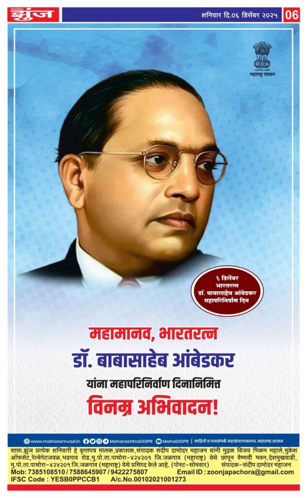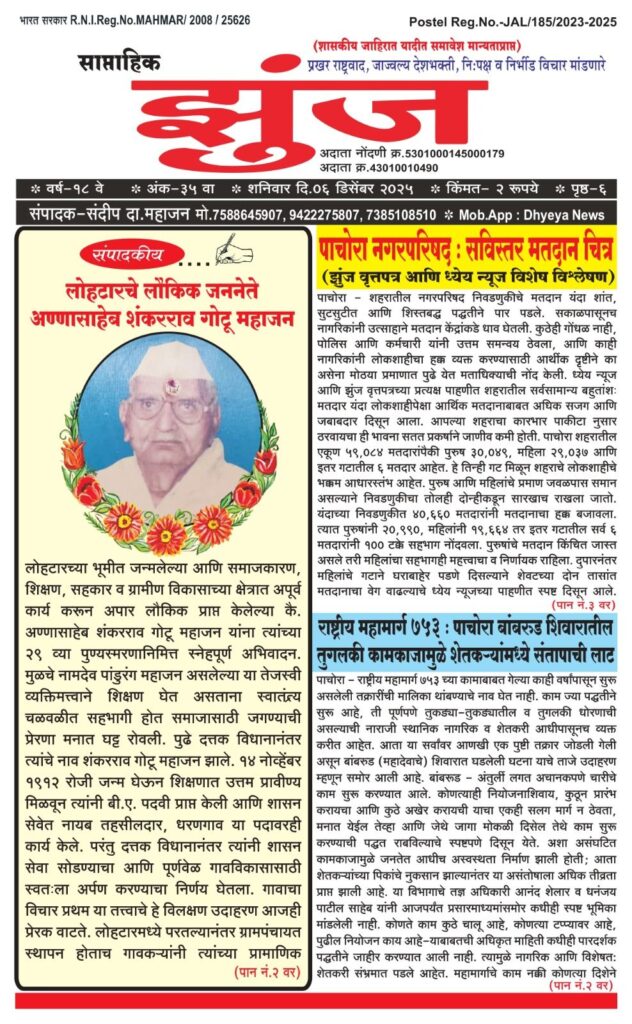 साप्ता.झुंज चा वर्ष 18 अंक क्र. 35 दि. 06 डिसे.2025 चा अंक