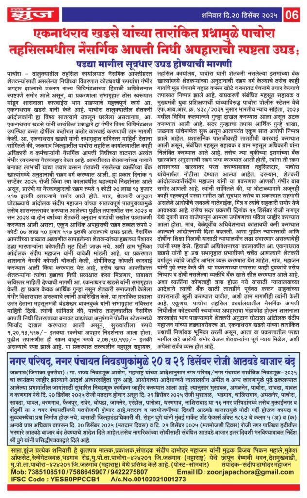 ध्येय न्यूज चॅनेलच्या बातम्या मिळवण्यासाठी येथे क्लिक करून आमचा व्हाट्सअप ग्रुप जॉईन करा.