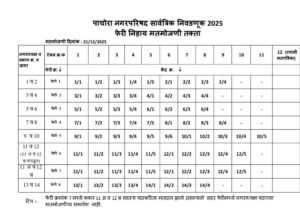 पाचोरा – नगरपालिकेच्या निवडणुकीत आज प्रभाग क्रमांक ११ अ आणि १२ ब मध्ये होणारे मतदान हे केवळ दोन जागांपुरते मर्यादित नसून, संपूर्ण पाचोरा शहराच्या राजकीय दिशादर्शक ठरणारे आहे. दि. २ डिसेंबर रोजी २६ नगरसेवक पदे आणि १ नगराध्यक्ष पदासाठी मतदानाची प्रक्रिया एकूणच शांततेत आणि सुरळीत पार पडली होती. मात्र न्यायालयीन प्रक्रियेमुळे या दोन प्रभागांतील उमेदवारांचे मतदान त्या दिवशी होऊ शकले नव्हते. त्यामुळे आज स्वतंत्रपणे या दोन प्रभागांसाठी मतदान घेण्यात येत असून, यामुळे निवडणुकीची उत्सुकता आणि नैसर्गीक तापमान थंड असले तरी चर्चेचे राजकीय तापमान वाढले आहे. आजच्या मतदानासाठी प्रशासनाने आवश्यक ती सर्व तयारी पूर्ण केली आहे. मतदान