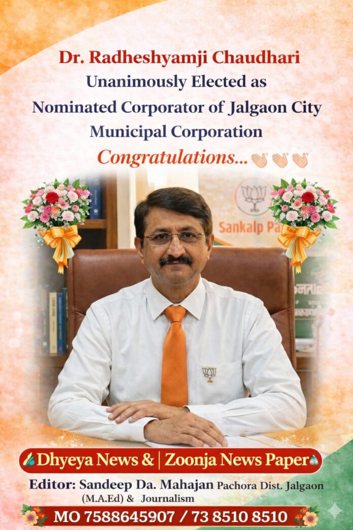 जलगांव – जिले के सामाजिक, चिकित्सकीय और राजनीतिक क्षेत्र में लगातार प्रभावशाली कार्य करने वाले डॉ. राधेश्याम धर्मराज चौधरी को जलगांव महानगरपालिका के स्वीकृत सदस्य पद पर चयनित किया जाना केवल एक नियुक्ति नहीं बल्कि उनके दीर्घकालीन कार्य की भारतीय जनता पार्टी द्वारा दी गई आधिकारिक सराहना माना जा रहा है। भारतीय जनता पार्टी के शीर्ष नेतृत्व ने उन पर जो विश्वास जताया है, वह उनकी निष्ठा, कार्यक्षमता और संगठनात्मक कौशल की स्पष्ट पहचान है। इस कारण यह चयन जलगांव के राजनीतिक और सामाजिक क्षेत्र में विशेष चर्चा का विषय बन गया है। डॉ. चौधरी जलगांव के निवासी हैं तथा उन्होंने चिकित्सा क्षेत्र में एम.बी.बी.एस.डी.जी.ओ. जैसी उच्च शैक्षणिक उपाधियां प्राप्त की हैं। सृष्टी हॉस्पिटल के माध्यम से उन्होंने स्त्री रोग एवं प्रसूति,वंध्यत्व निवारण तथा सोनोग्राफी के क्षेत्र में उल्लेखनीय सेवाएं दी हैं। उनके कार्यों से हजारों परिवारों को नया जीवन मिला है और उन्होंने “सेवा ही धर्म है” के सिद्धांत पर कार्य करते हुए समाज में विश्वास स्थापित किया है। राजनीतिक क्षेत्र में भारतीय जनता पार्टी से जुड़े डॉ. चौधरी मई 2025 से भाजपा जलगांव पश्चिम जिला अध्यक्ष के रूप में कार्यरत हैं। इससे पूर्व वे 2019 से 2025 तक जिला महामंत्री के रूप में संगठन को मजबूत करने में महत्वपूर्ण भूमिका निभा चुके हैं। वर्ष 2024 के लोकसभा चुनाव प्रमुख तथा प्रभारी के रूप में उन्होंने प्रभावी नियोजन कर पार्टी के चुनावी तंत्र को मजबूती प्रदान की। साथ ही लोकसभा संवाद केंद्र के संयोजक और विस्तारक योजना के पालक के रूप में उन्होंने कार्यकर्ताओं में नई ऊर्जा का संचार किया। “मन की बात” कार्यक्रम के माध्यम से भारतीय जनता पार्टी की संगठनात्मक शक्ति को मजबूत करने में उन्होंने महत्वपूर्ण भूमिका निभाई। उनके नेतृत्व में भाजपा जलगांव पश्चिम जिले ने केंद्रीय कार्यालय के रिपोर्ट अनुसार मन की बात कार्यक्रम के बुथ स्तरीय आयोजन मे लगातार राज्य में प्रथम स्थान प्राप्त किया। जलगांव ग्रामीण विधानसभा क्षेत्र ने भी महाराष्ट्र मे प्रथम स्थान हासिल किया, जबकि अन्य चार विधानसभा क्षेत्रों ने राज्य के टॉप 8 में स्थान प्राप्त किया। यह सफलता मा. देवेंद्रजी फडणवीस, मा. -आ.रविदादा चव्हाण और मा. गिरीषभाऊ महाजन के मार्गदर्शन तथा भारतीय जनता पार्टी के कार्यकर्ताओं के अथक परिश्रम से संभव हुई। इसी पृष्ठभूमि में जलगांव महानगरपालिका के स्वीकृत सदस्य पद पर उनकी नियुक्ति अत्यंत महत्वपूर्ण मानी जा रही है। भारतीय जनता पार्टी द्वारा दी गई यह जिम्मेदारी उनके निरंतर और समर्पित कार्य की सच्ची पहचान है। पार्टी की विचारधारा के प्रति निष्ठावान रहते हुए किए गए कार्यों की 